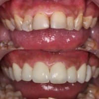 A Veneer is a layer of material placed over a tooth, either to improve the aesthetics of a tooth or to protect the tooth's surface from damage. There are two main types of material used to fabricate a veneer: composite and dental porcelain. A composite veneer may be directly placed (built-up in the mouth), or indirectly fabricated by a dental technician in a dental lab, and later bonded to the tooth, typically using a resin cement such as Panavia. In contrast, a porcelain veneer may only be indirectly fabricated. Laminate veneer is a thin layer that covers only the surface of the tooth and generally used for aesthetic purposes.Small gaps between teeth could be closed with veneers by making the teeth a better shape. Sometimes these gaps are near the gum where the gum has pulled back (receded).